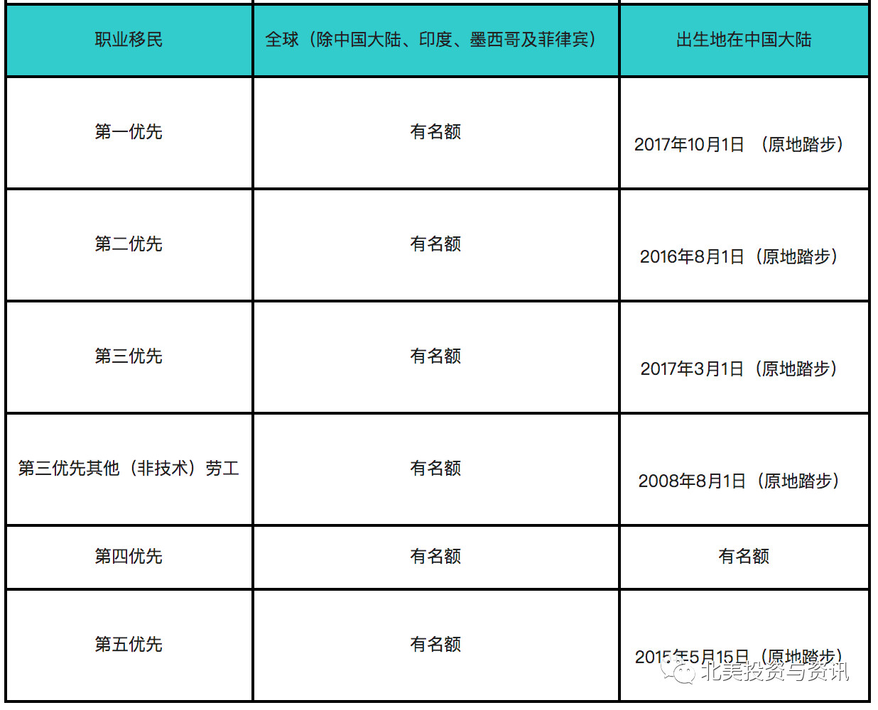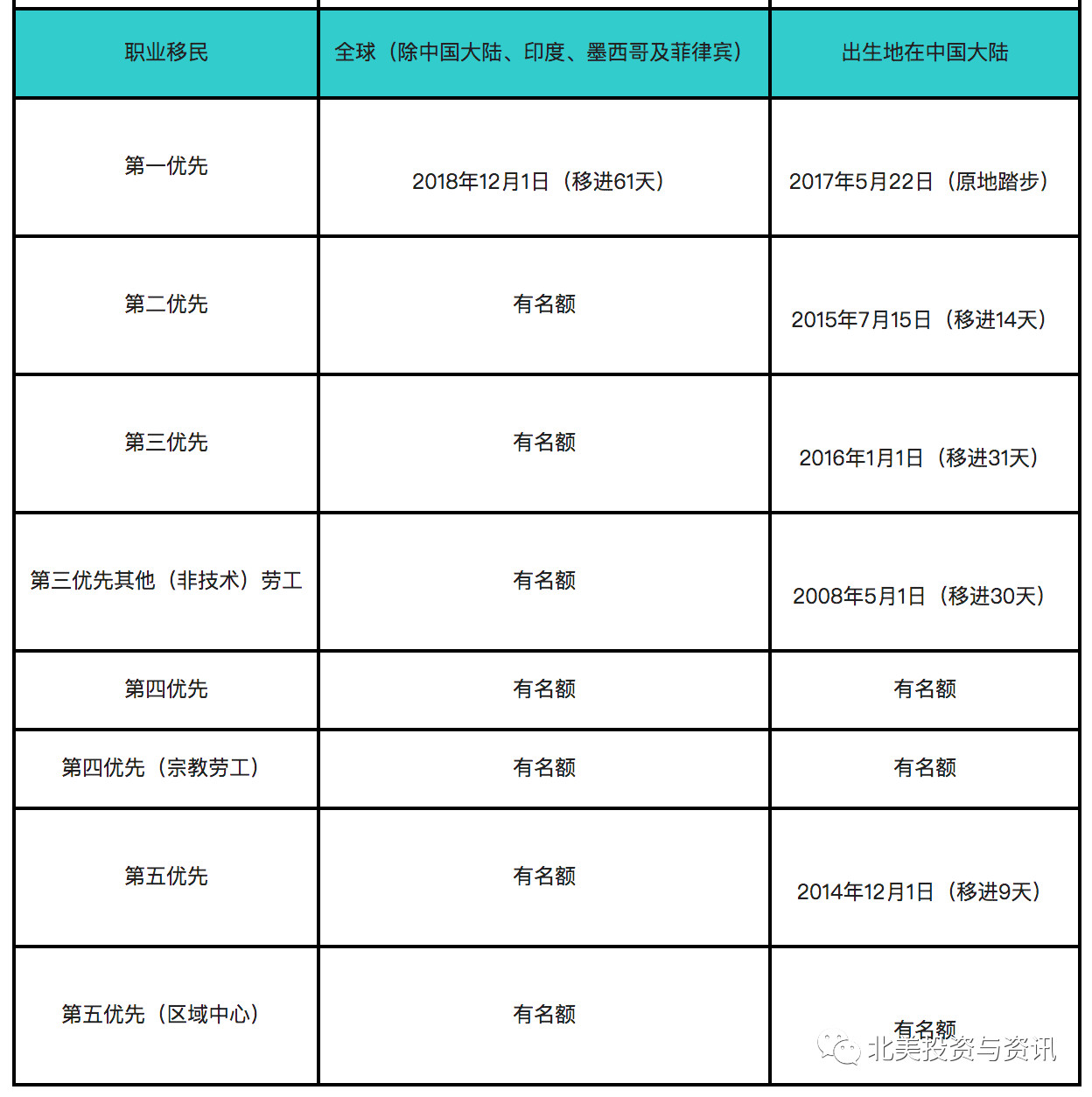 港澳台申请人第一优先的排期连续数月推进,2月移进61天至2018年12月1日;第二优先、第三优先(一般类以及非技术劳工)、第四优先以及第五优先等都是有名额。中国大陆出生申请人第一优先,2月排期原地踏步、维持在2017年5月22日;第二优先移进14天至2015年7月15日;第三优先(一般类)移进31天至2016年1月1日;第三优先其他类别(非技术劳工)移进30天至2008年5月1日;第五优先(非区域中心)移进9天至2014年12月1日。